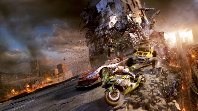 For Apocalypse Evolution Studios added more styles of cars into the fold, including choppers, superbikes and muscle cars. Gone are the natural environments, replaced with a giant city that has been riddled with natural disasters and explosions. Also found is a story mode, split into three difficulties (Rookie, Pro, Veteran) that each follow a different racer. Playing through each of these three storylines will also show off different parts of the disasters that happen during the two-day festival.