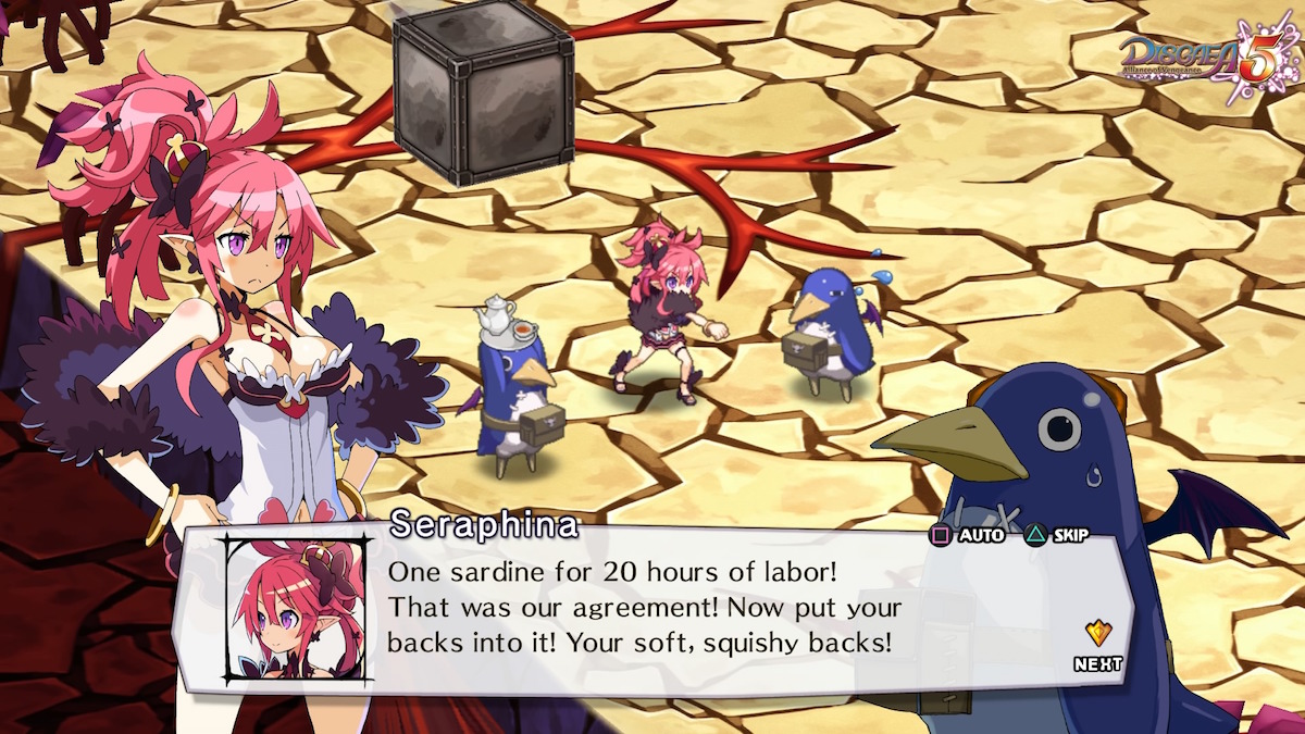 At first Disgaea 5 holds your hand during the first couple stages, as they act as a tutorial so you can get a handle of how Sir Killia, Seraphina, Red Magnus, and the rest of your crew operates. Without warning the difficulty jumps into full gear, and soon you'll be taking on levels that will take at least half an hour to complete. It will be apparent that you will fail countless times as you play each stage until you get it right, and once you do it'll be thanks to some outside-the-box thinking that will require a huge sum of brain power to conduct.